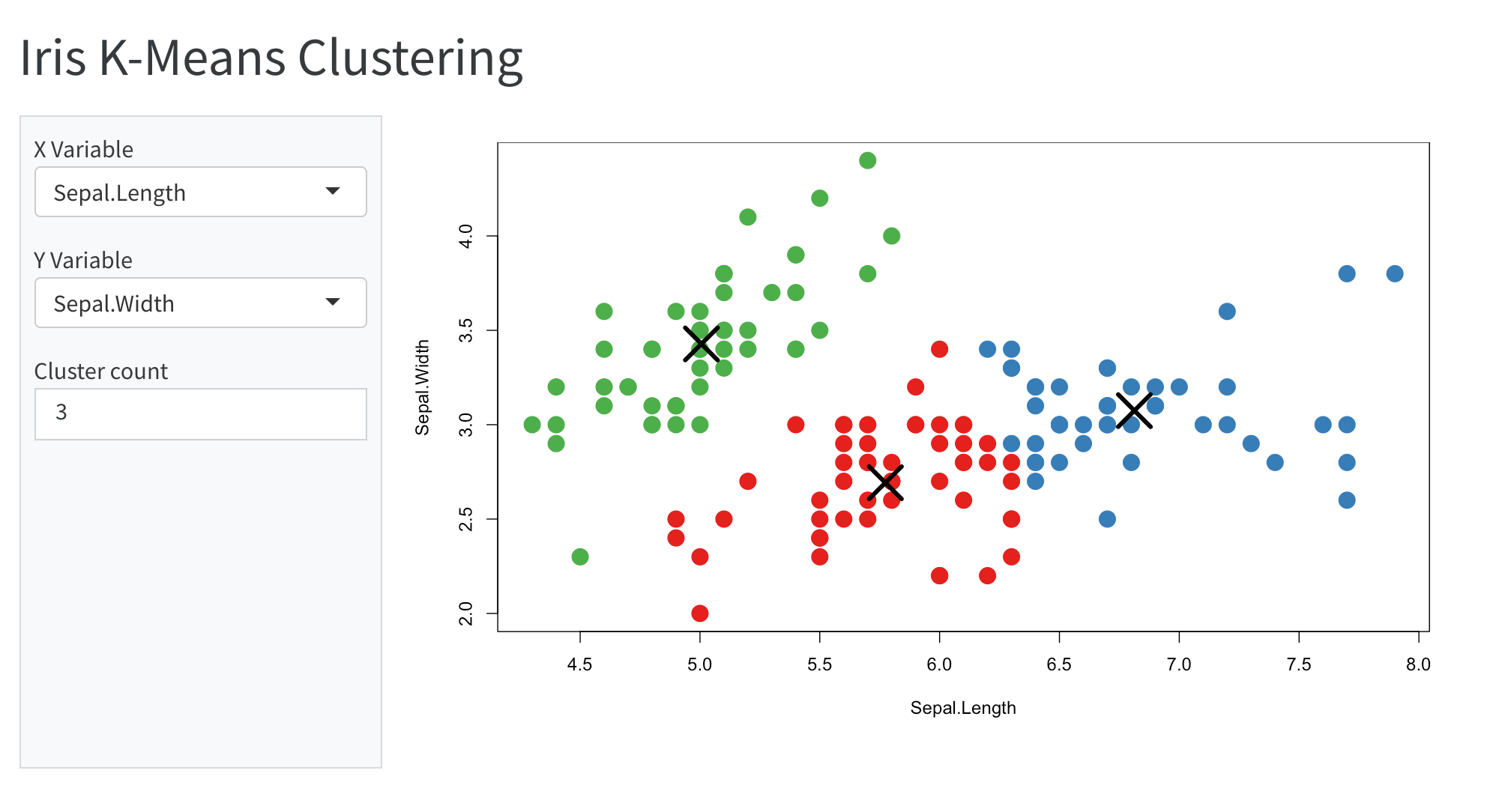 | K-Means | Code | Demonstrates using a more “application-like” page layout (sidebar and main panel) |